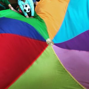 The older children have been engaging in parachute activities. This is always REALLY enjoyable, and requires cooperation, listening really carefully to instructions and following them explicitly as a group. It’s a superb language learning opportunity! Over the years I have noticed that the ability to focus without distraction on the verbal instructions of an ‘expert’ (teacher, educator, coach, tour guide, lecturer) is a real contributor to successful learning and parachute activities practice this skill.